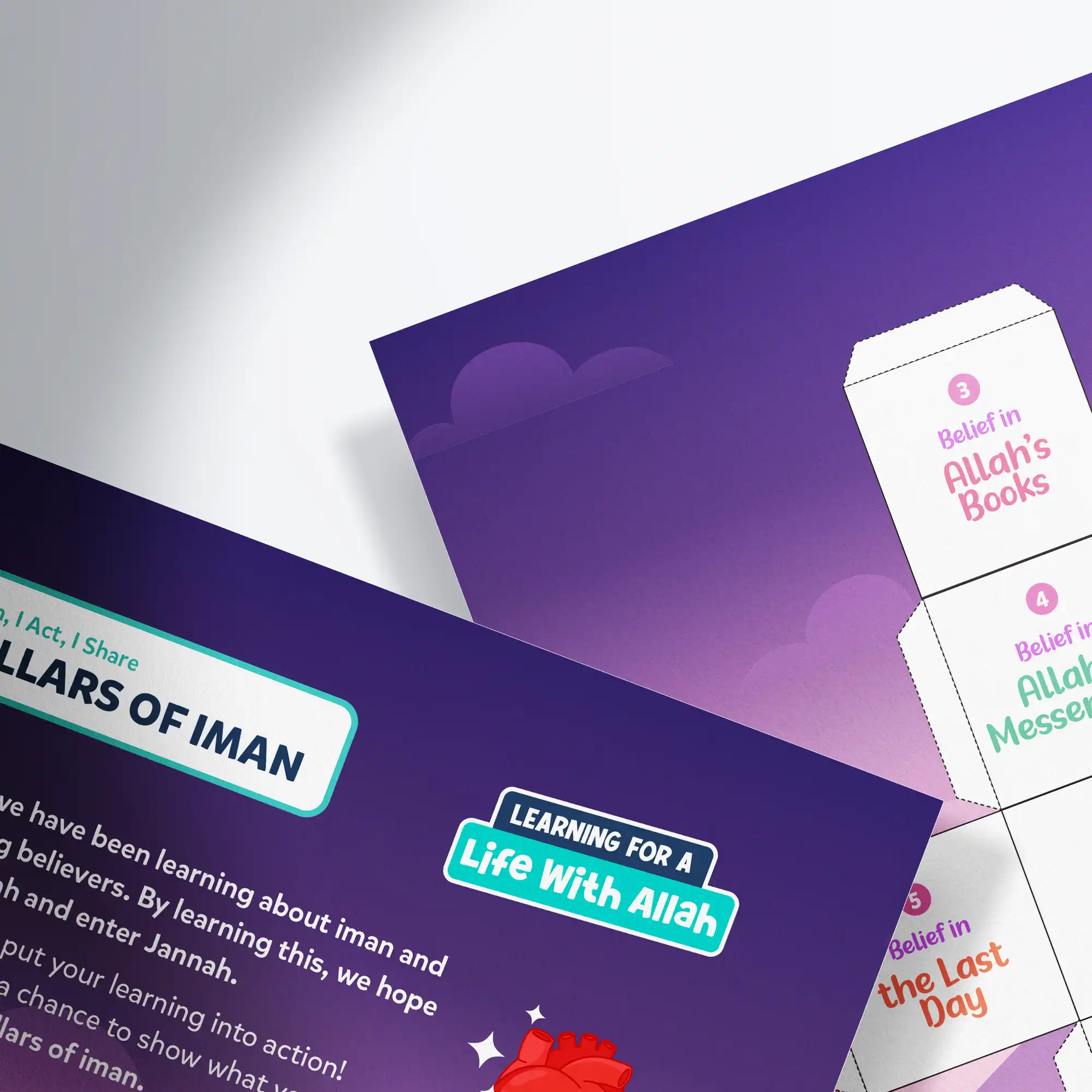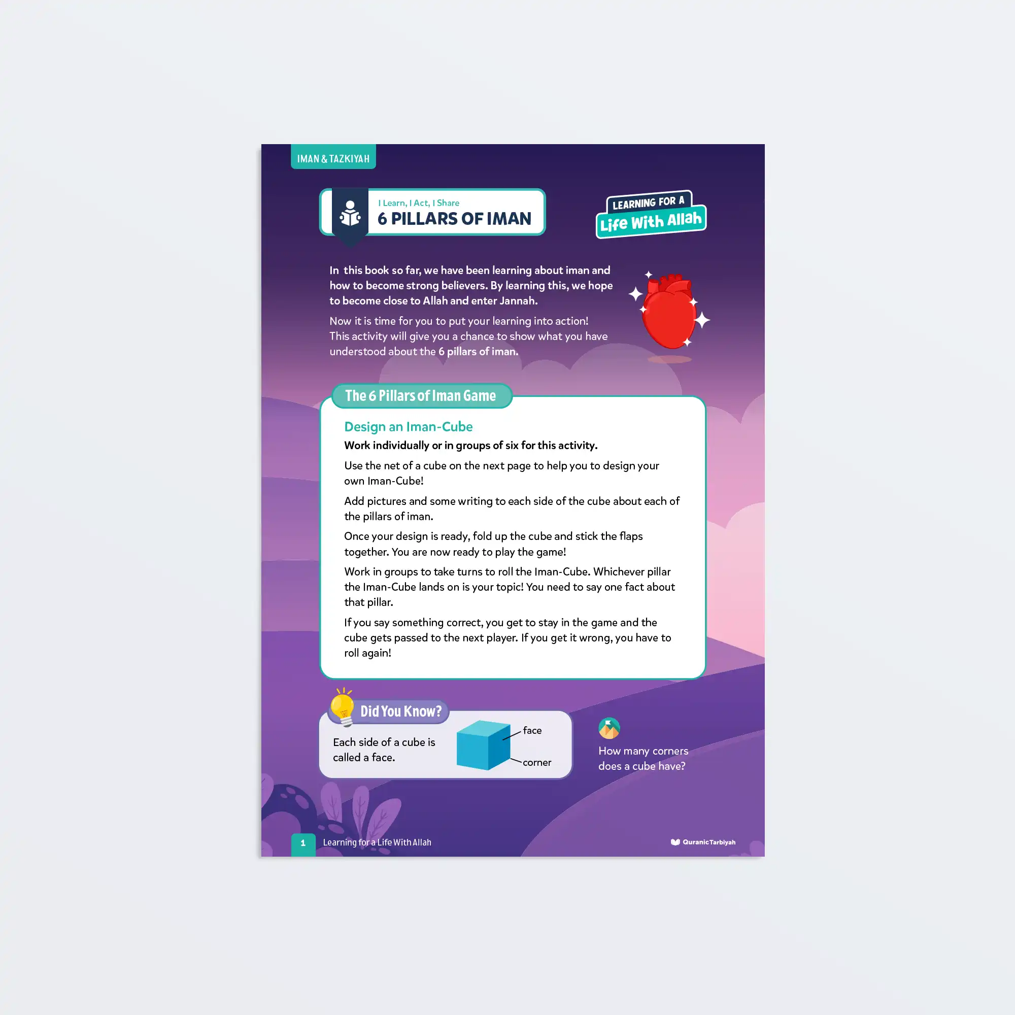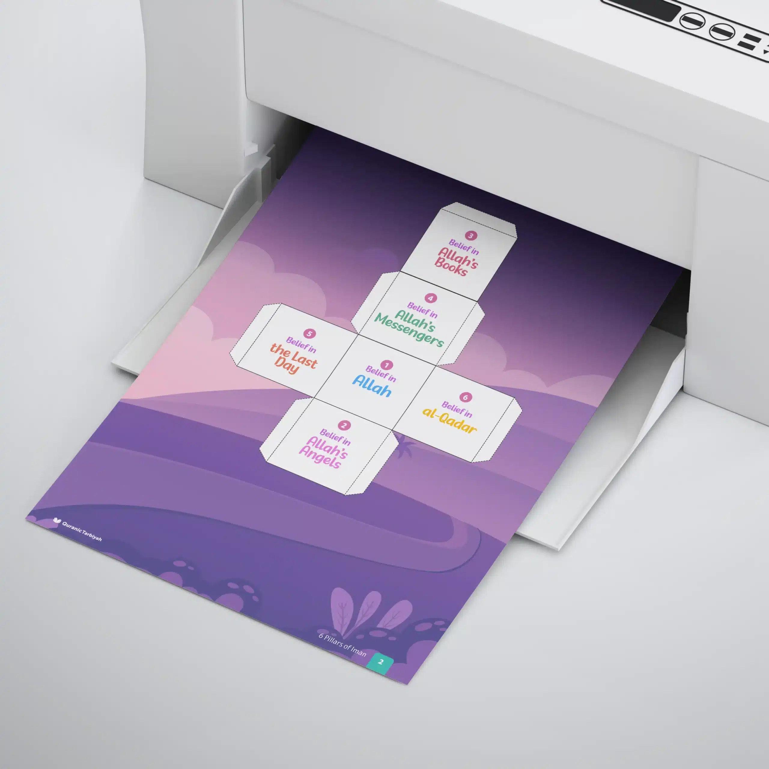 After learning about the 6 pillars of iman, young learners are invited to put their understanding into action through a joyful, creative activity that transforms knowledge into something tangible and memorable. This free downloadable activity guides children to design, create, and play with their very own Iman-Cube, bringing the pillars of faith to life in their hands and hearts.