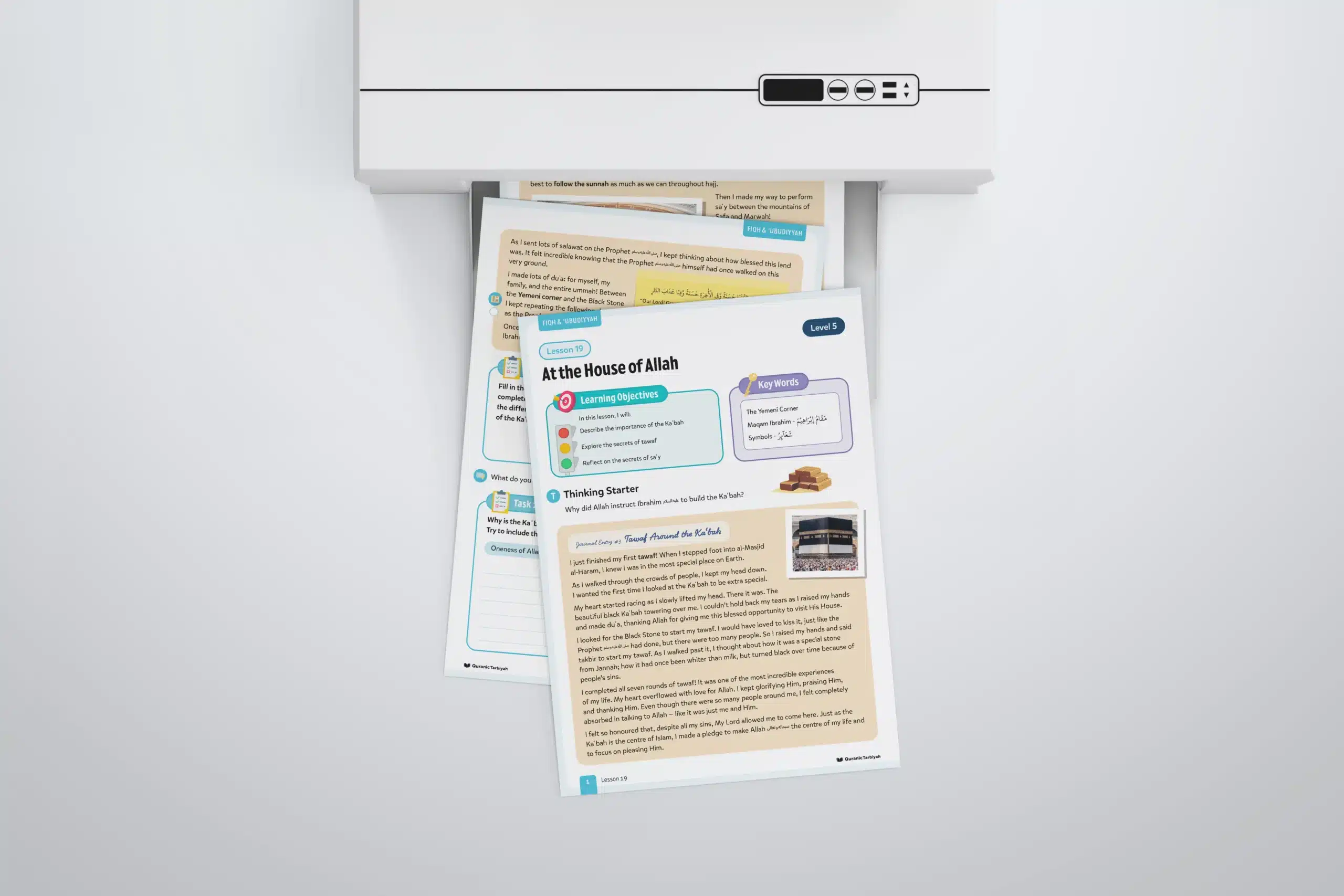 Step inside the most sacred place on Earth with “At the House of Allah”. Continuing through Grandpa’s cherished Hajj Journal, learners are drawn into the awe-inspiring moments of tawaf around the Kaʿbah and saʿy between the mountains of Safa and Marwah, experiencing the spiritual depth of hajj through heartfelt personal reflection.