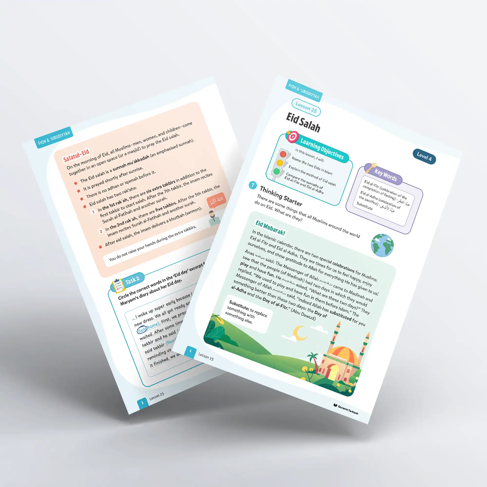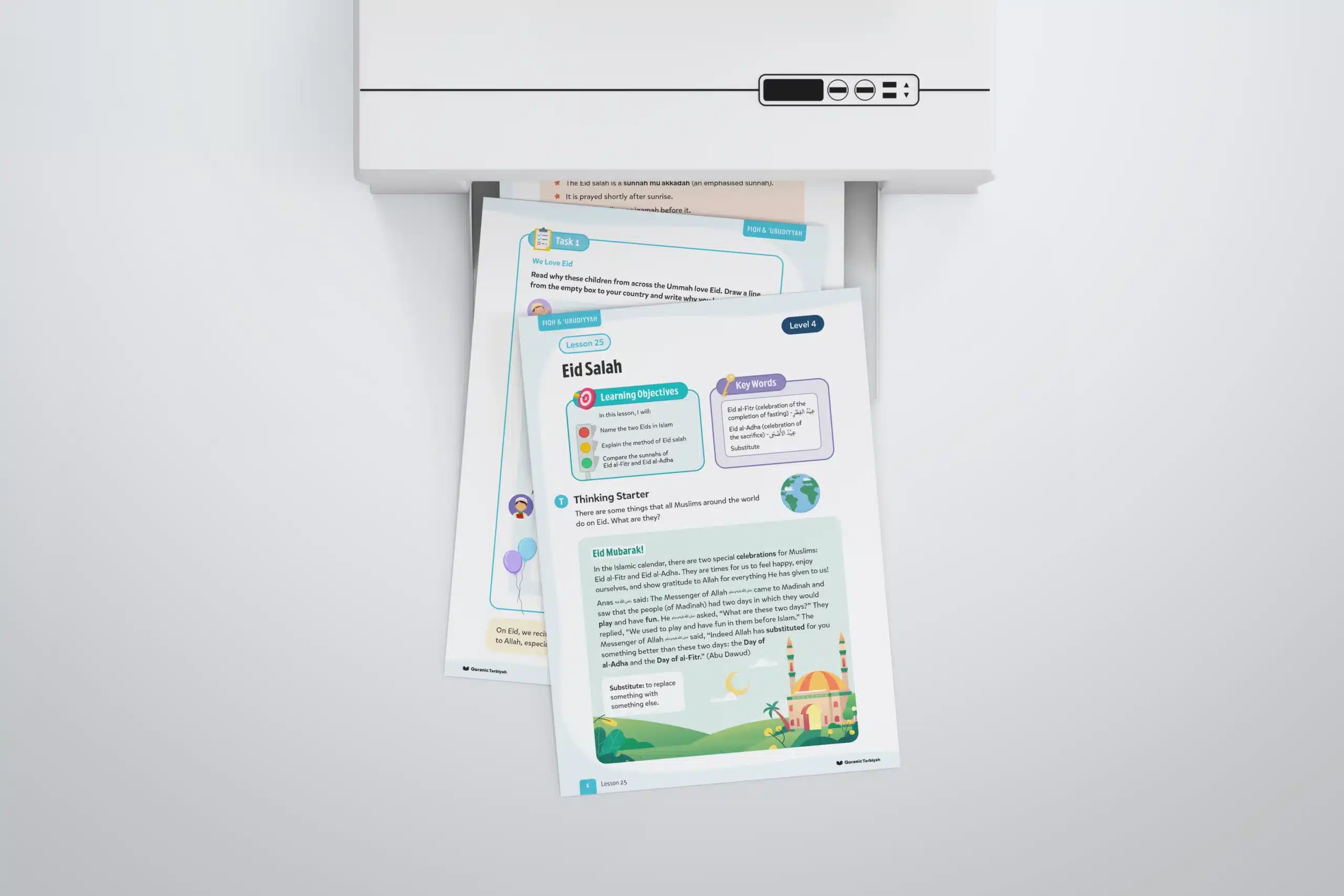 This thoughtfully designed lesson helps young learners understand that Eid is about thinking of others, not just ourselvesโgiving sadaqatul-fitr on Eid al-Fitr and sharing qurbani meat on Eid al-Adha. Through reflection and world map connections, learners discover the universal joy of Muslims worldwide celebrating together, understanding that as Muslims, Allah has blessed us with our own celebrations and we do not need to copy or participate in celebrations from other religions.