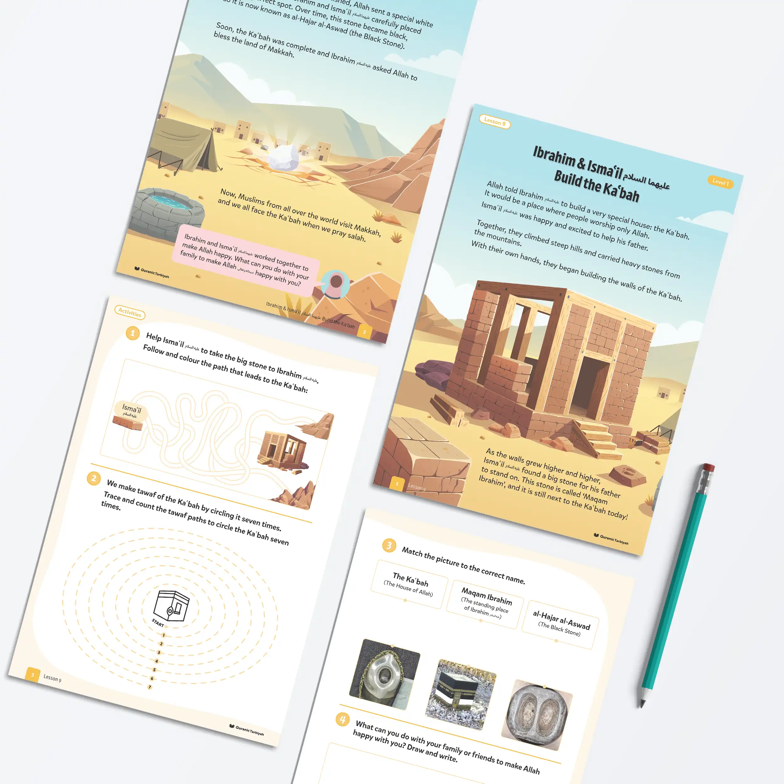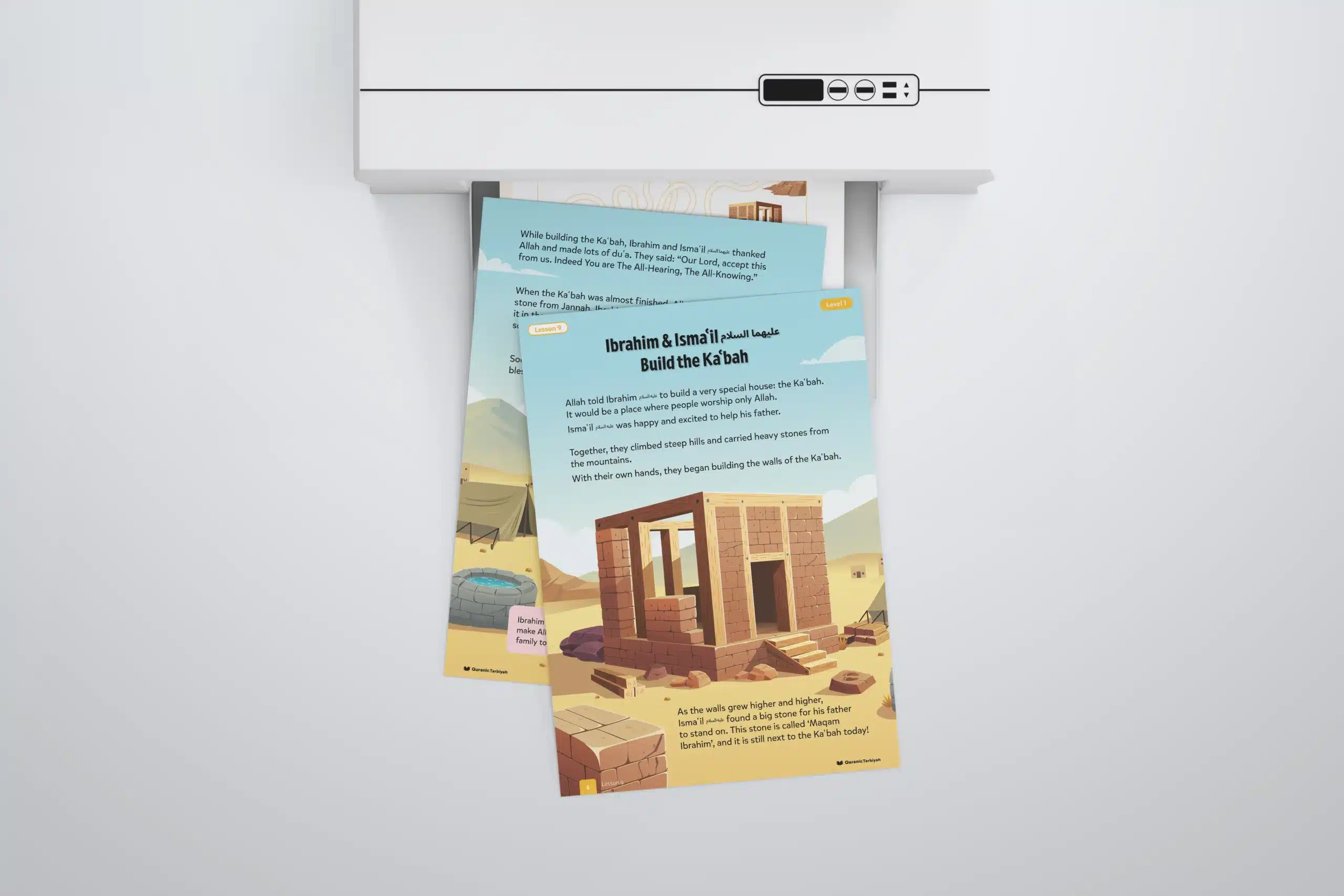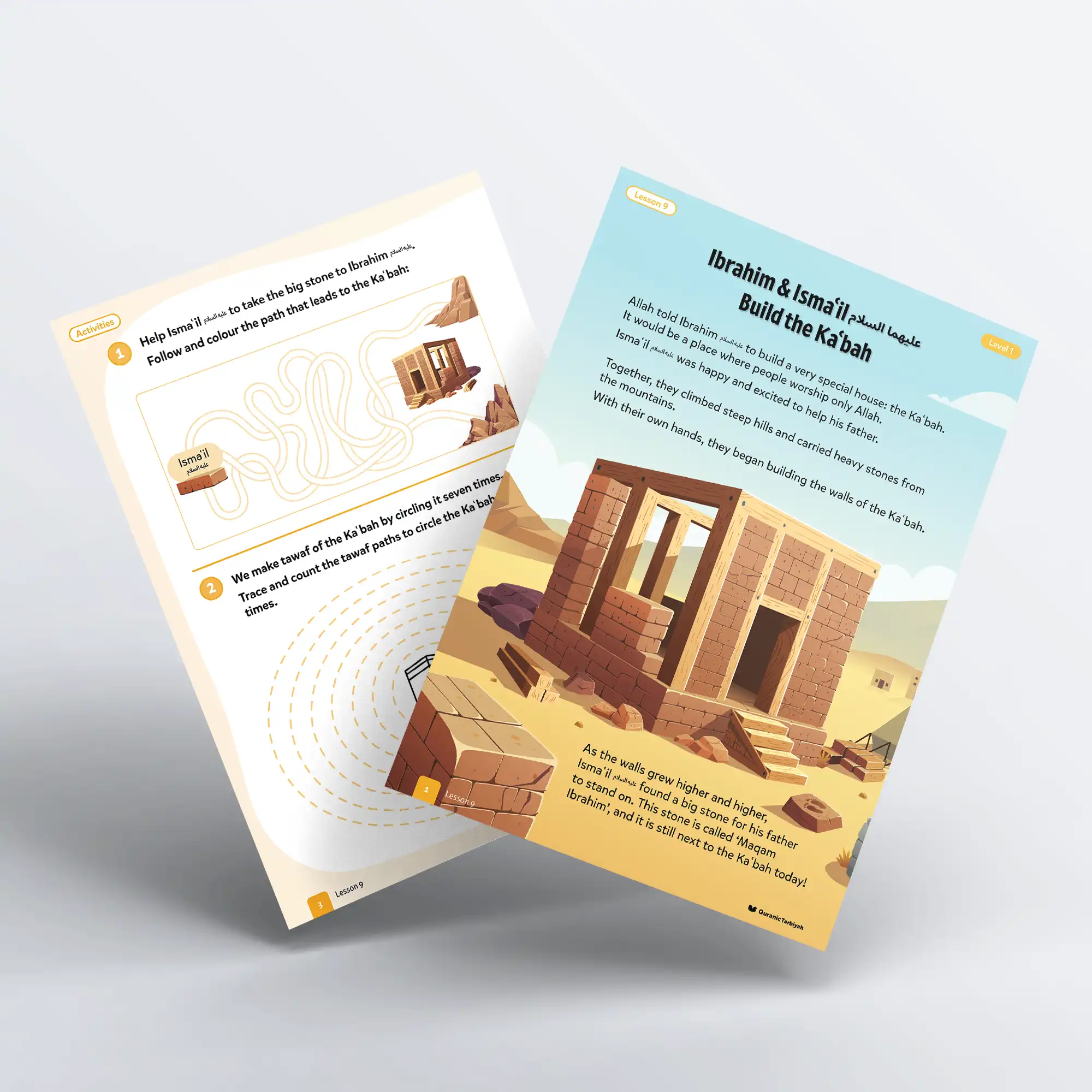 This Sirah lesson tells the story of how Ibrahim & Ismaʿil عليهما السلام Build the Kaʿbah, it follows Prophet Ibrahim عليه السلام and his son Ismaʿil عليه السلام as they climb steep hills, carry heavy stones from the mountains, and raise the walls of the Kaʿbah with their own hands, for the sake of Allah alone.