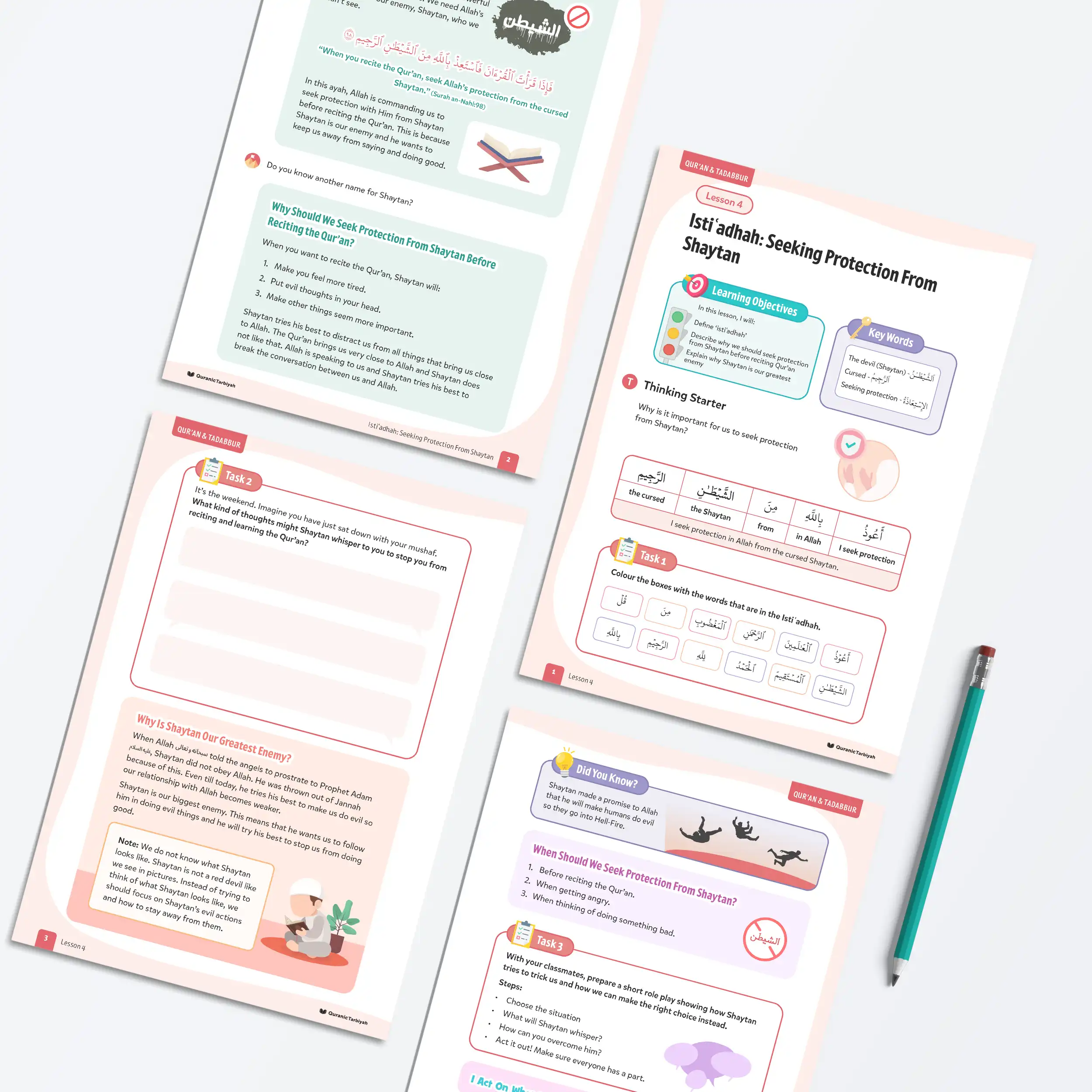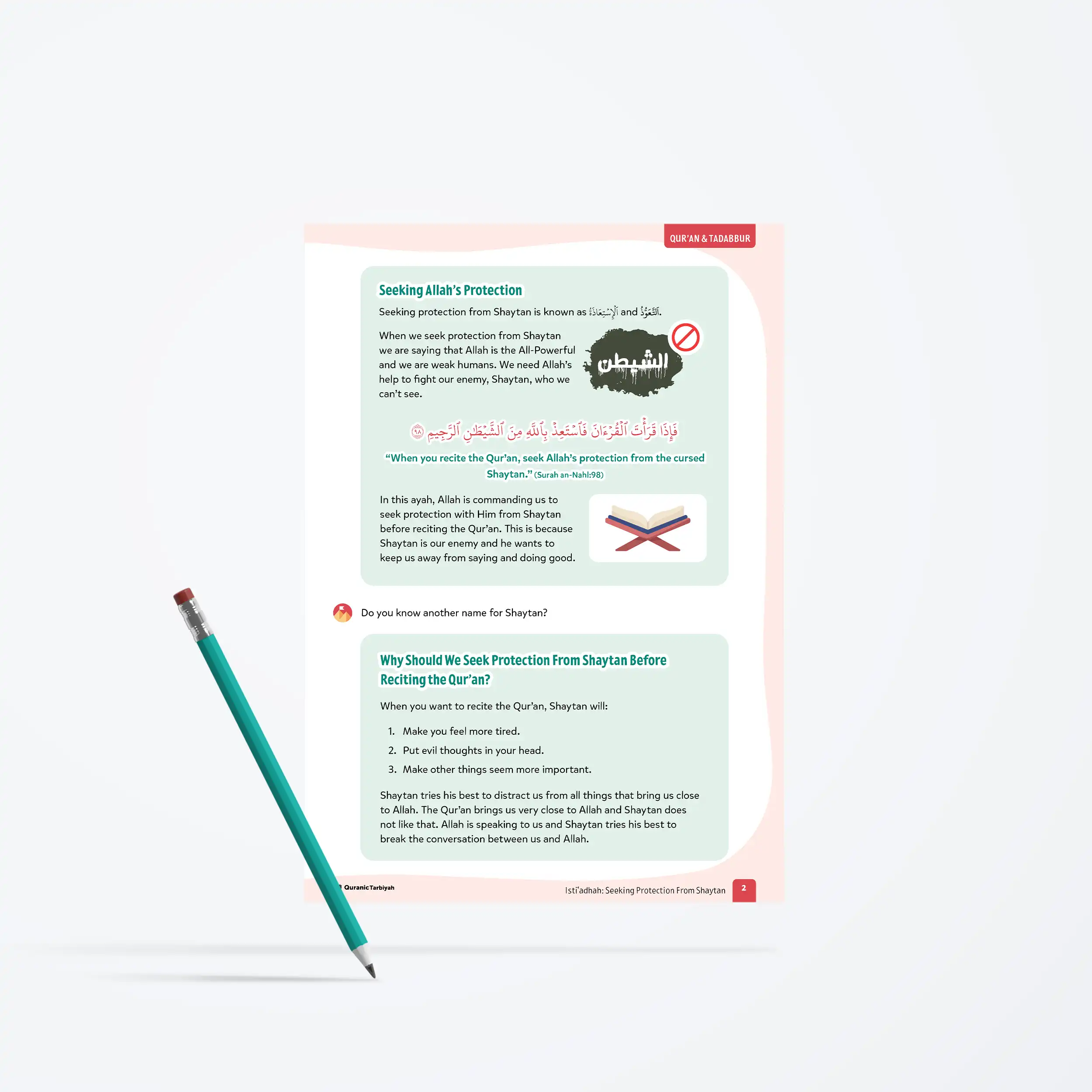 Equip young learners with the spiritual shield they need to protect themselves from Shaytan with this empowering lesson about istiʿadhah (seeking Allah’s protection). Through authentic Qur’anic guidance from Surah an-Nahl (16:98), learners aged 7+ will understand why Allah commands us to seek His protection before reciting the Qur’an and how this helps us fight our greatest enemy.