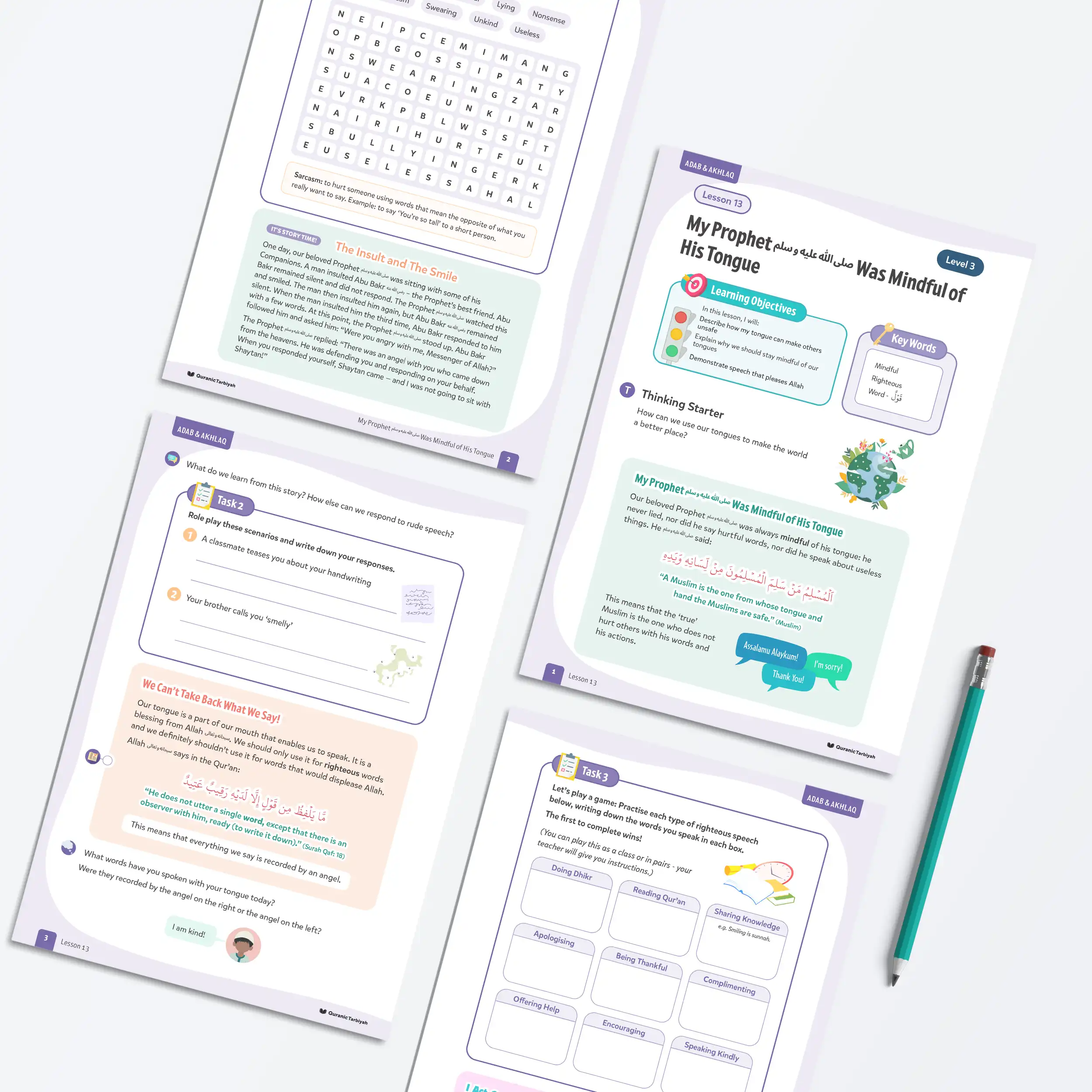 Give your child timeless values and noble manners through engaging lessons inspired by the Prophet ﷺ with Adab & Akhlaq Level 3 book.