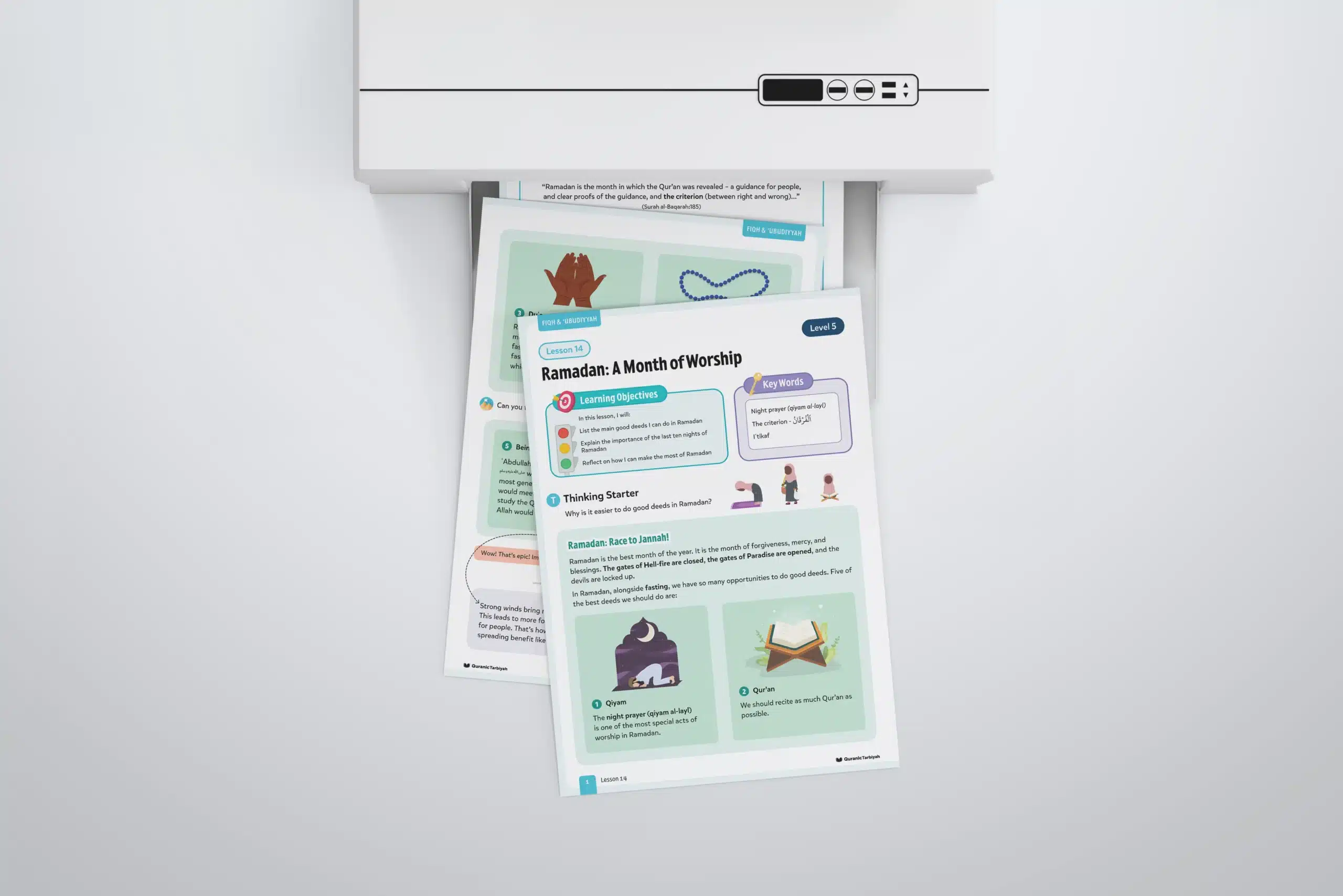 Help learners make the most of Ramadan through this inspiring lesson. They discover essential good deeds, learn about the last ten nights and iʿtikaf, and plan how to worship Allah excellently throughout the blessed month following the Prophet’s ﷺ example.