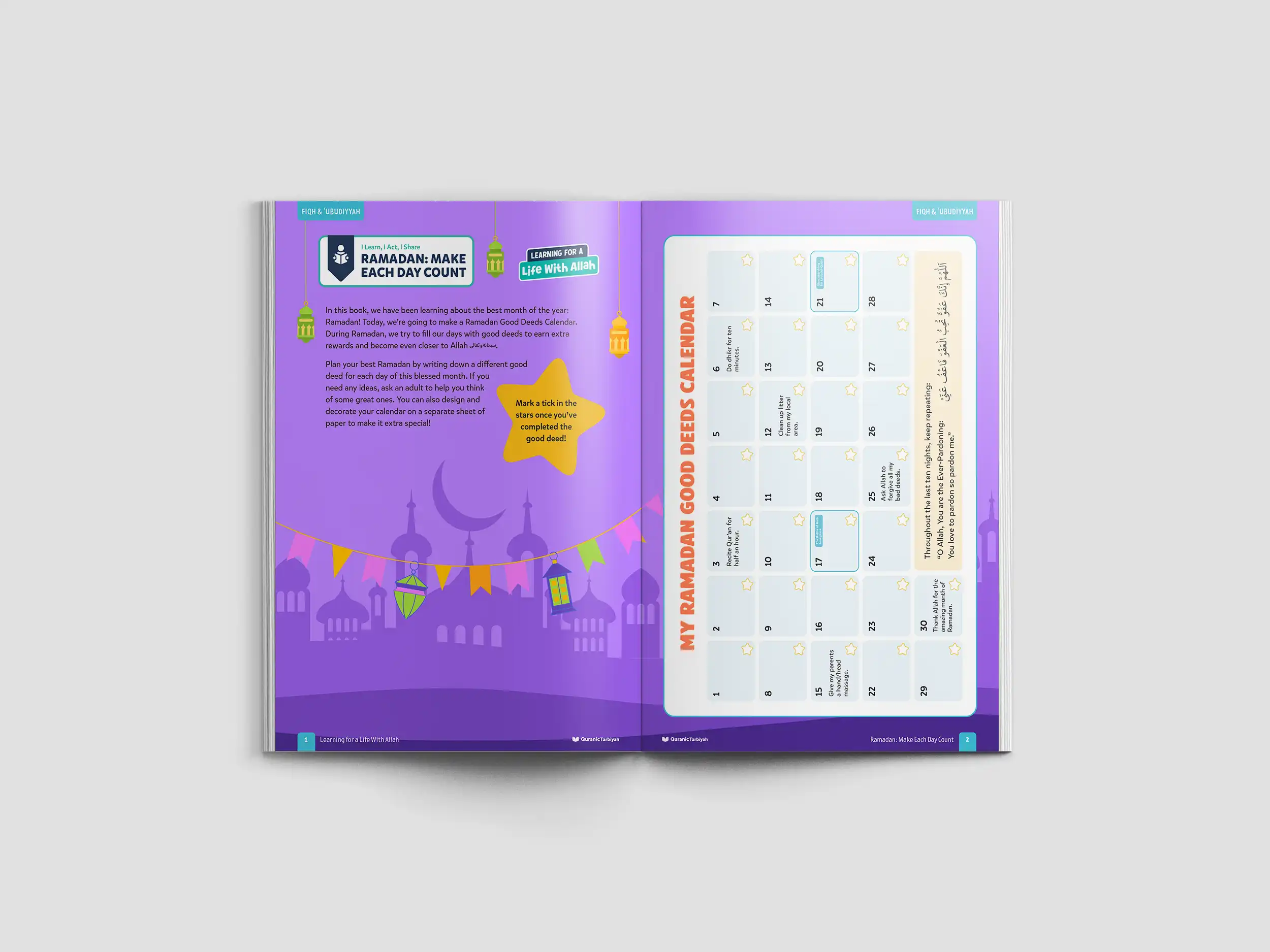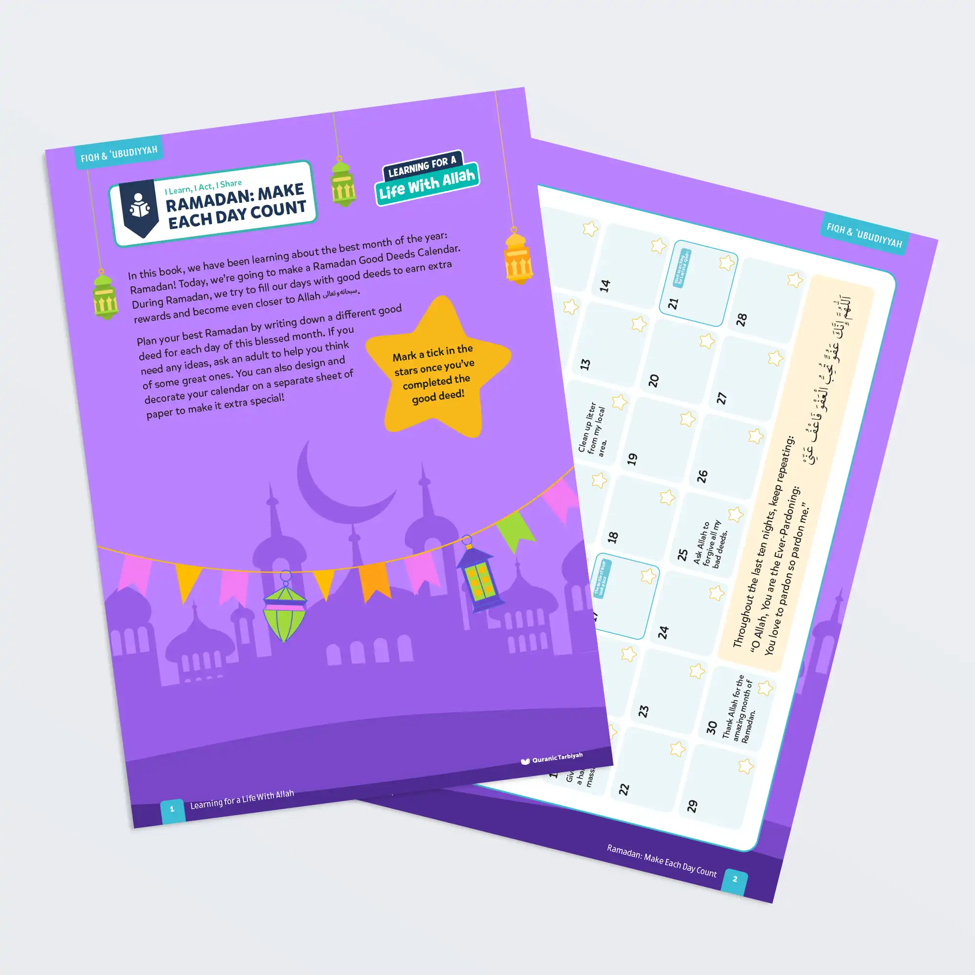 Help young learners aged 8+ make every day of Ramadan count through this inspiring Level 4 activity. Children create a personalized Good Deeds Calendar, planning daily acts of worship, kindness, and remembrance throughout the blessed month. The calendar includes guidance for seeking Laylatul Qadr during the last ten nights.