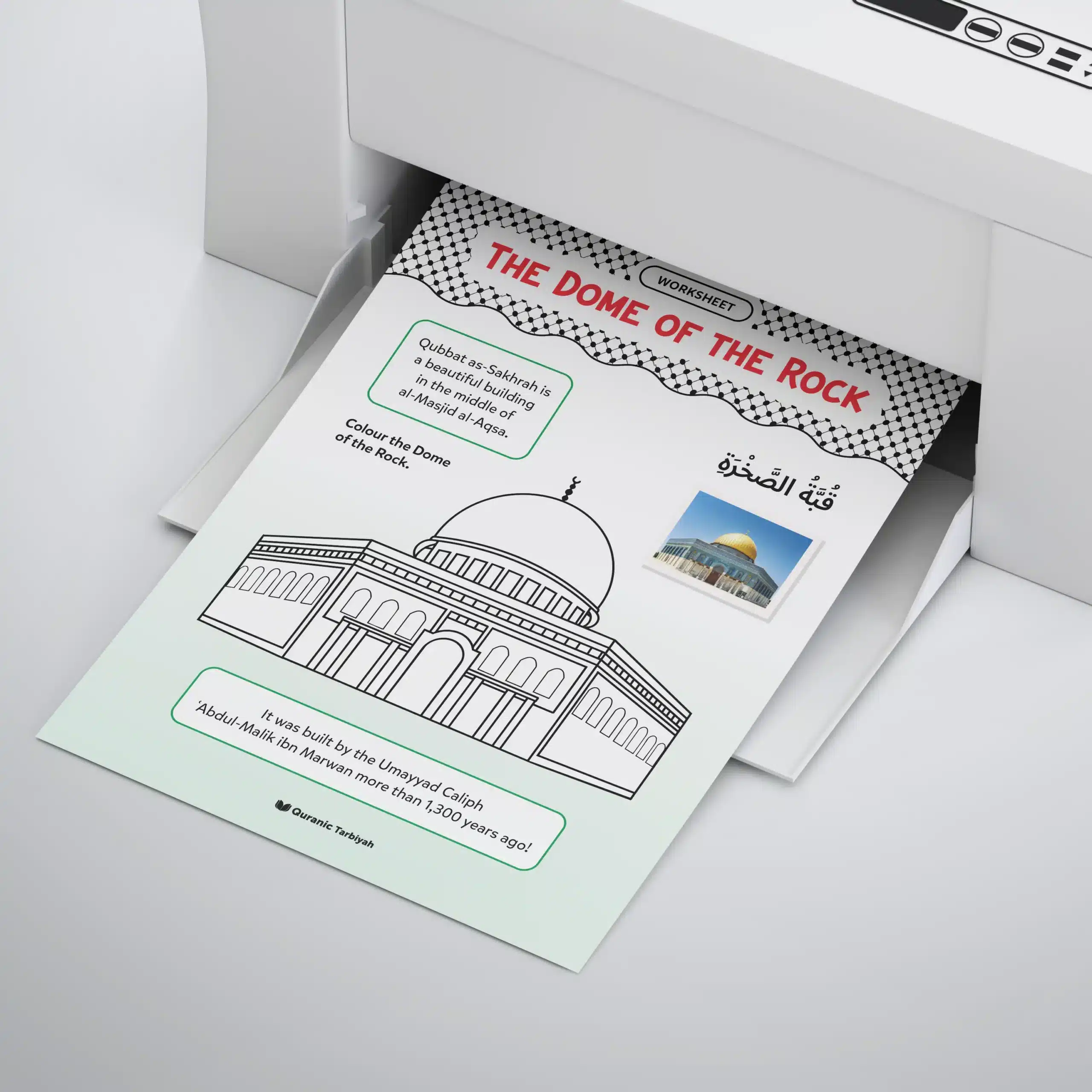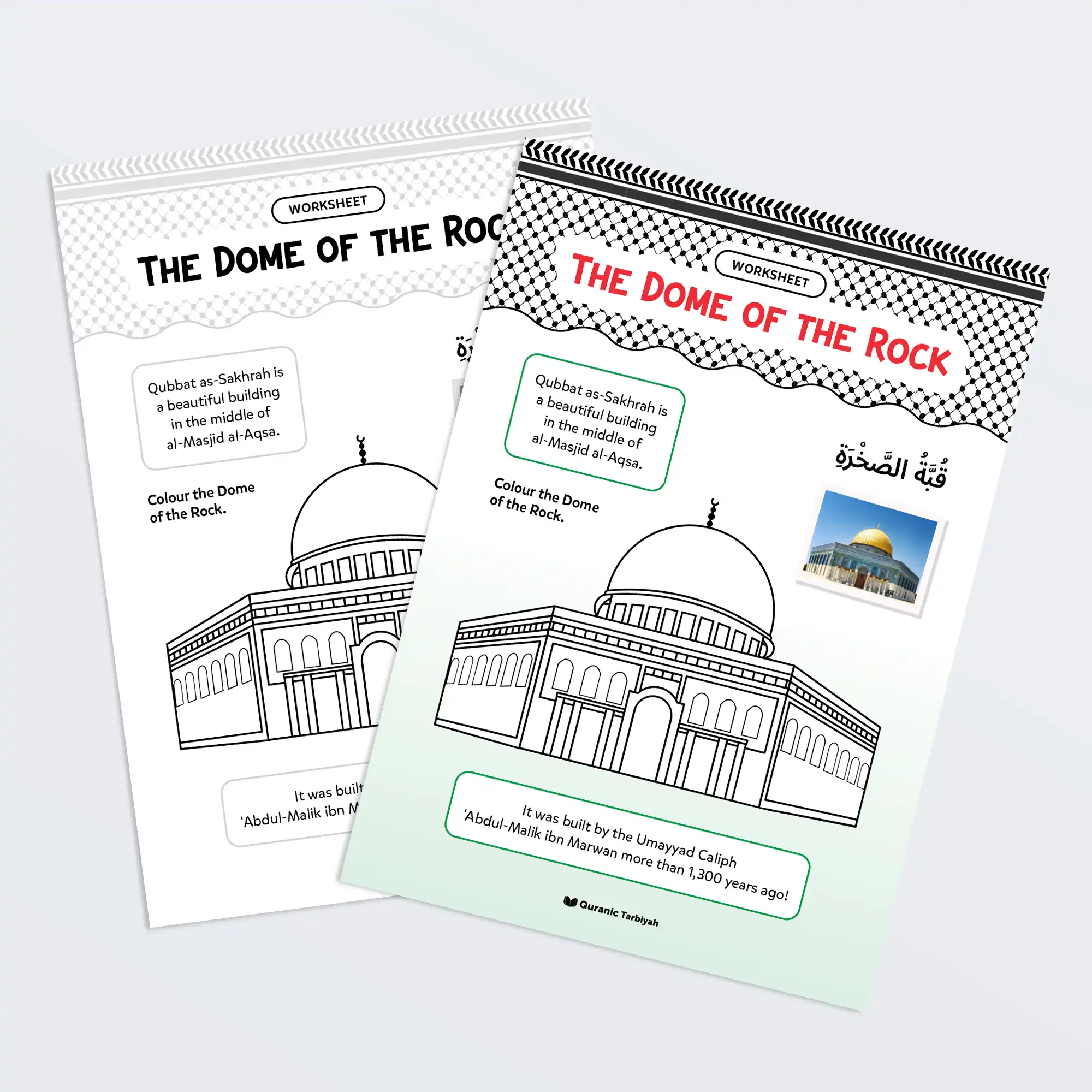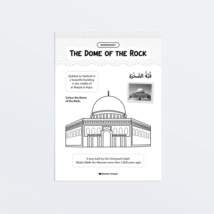 Help young learners discover Qubbat as-Sakhrah (the Dome of the Rock) through this beautiful colouring worksheet. They colour the iconic building whilst learning it sits in the middle of al-Masjid al-Aqsa and was built by Umayyad Caliph ʿAbdul-Malik ibn Marwan over 1,300 years ago.