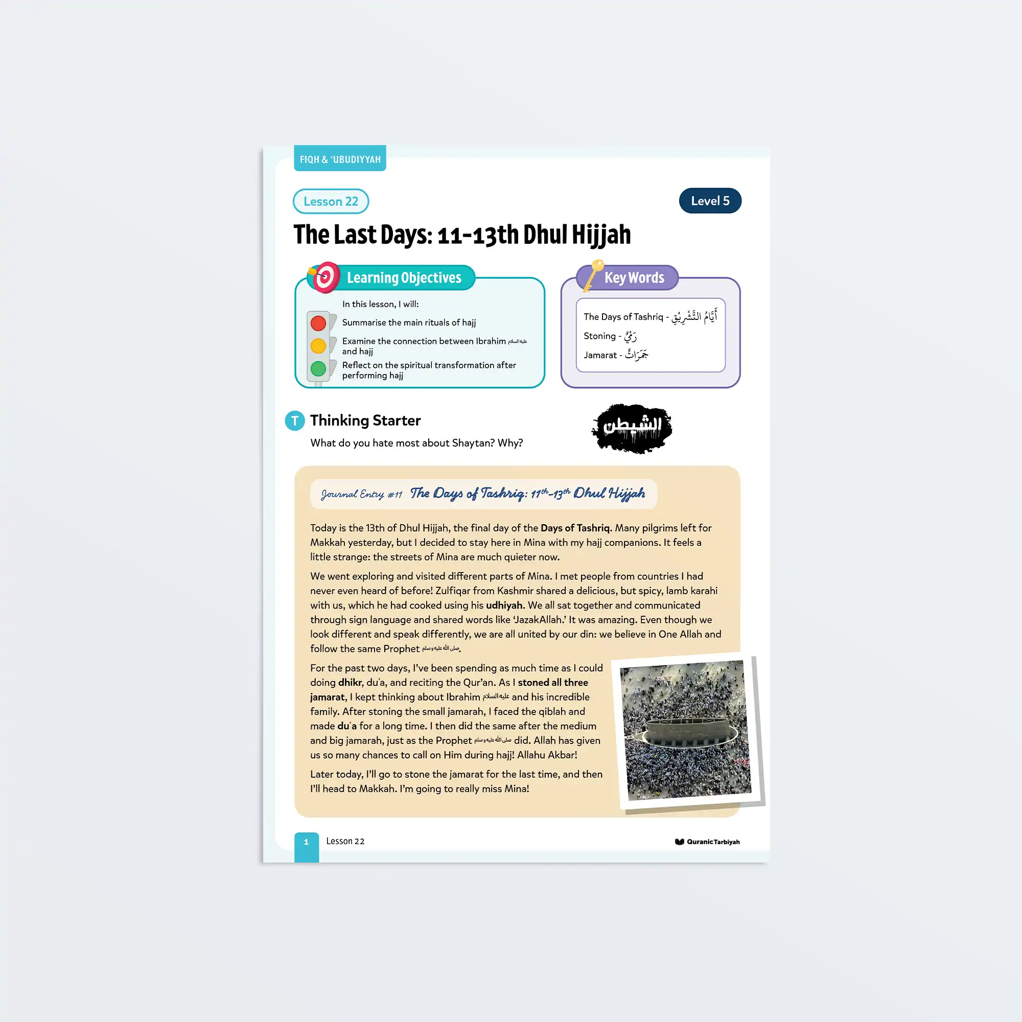 Hajj is not just a journey of the body, it is a journey of the soul. The Last Days: 11-13th Dhul Hijjah is the lesson guiding young learners through the final and deeply transformative days of the greatest pilgrimage on earth.