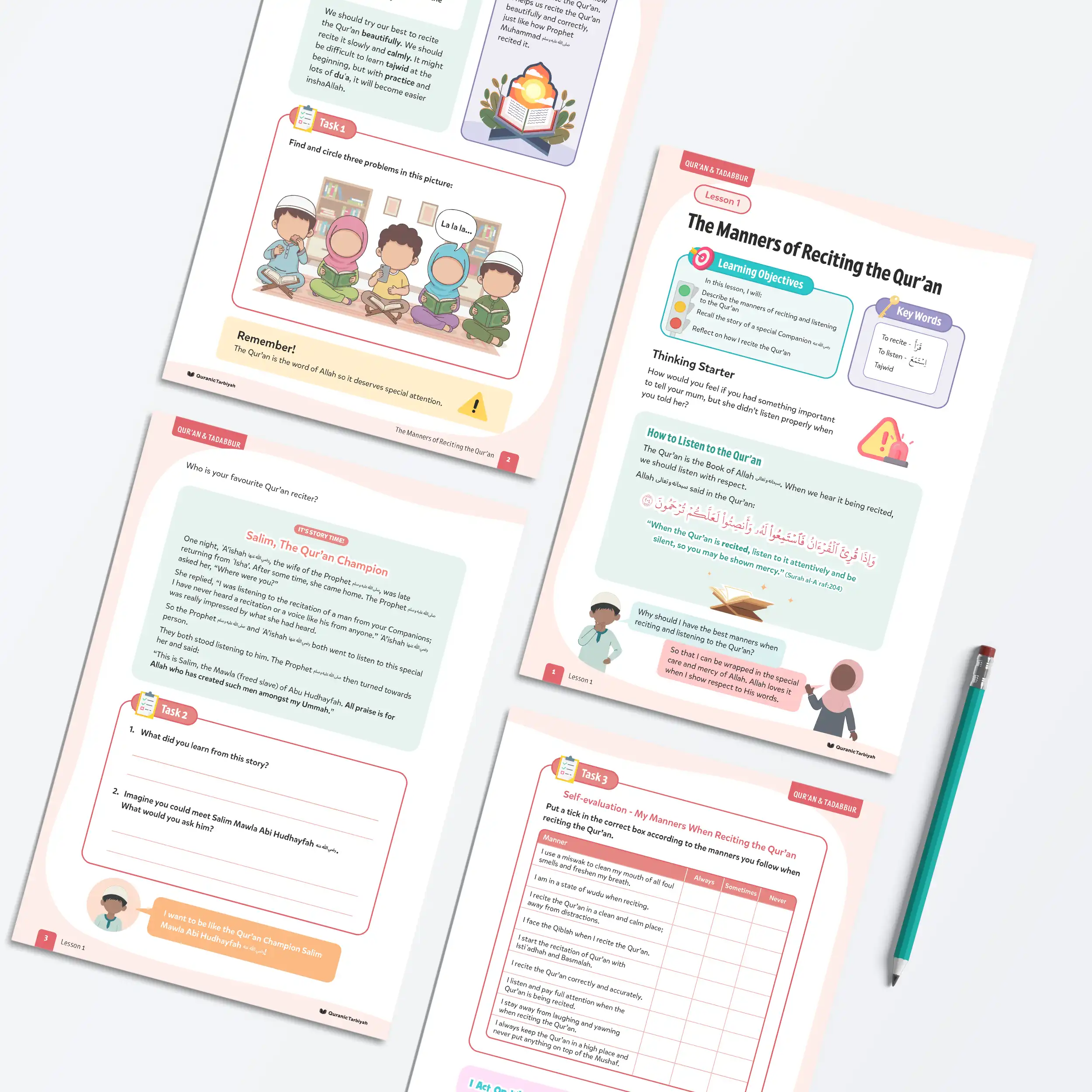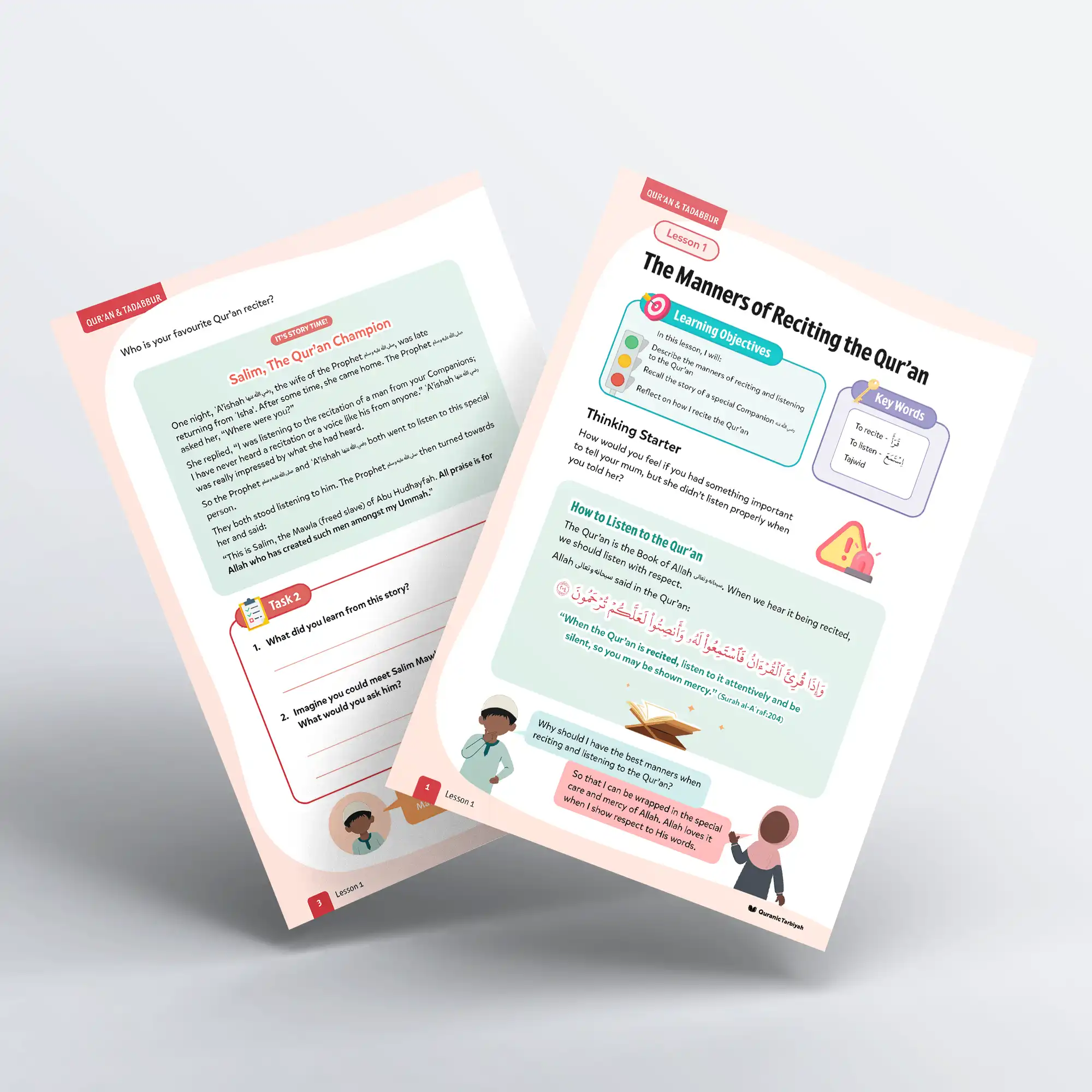 Teach young learners the beautiful manners of reciting and listening to the Qur’an through interactive activities and the inspiring story of companion Salim Mawla Abi Hudhayfah with this engaging lesson.