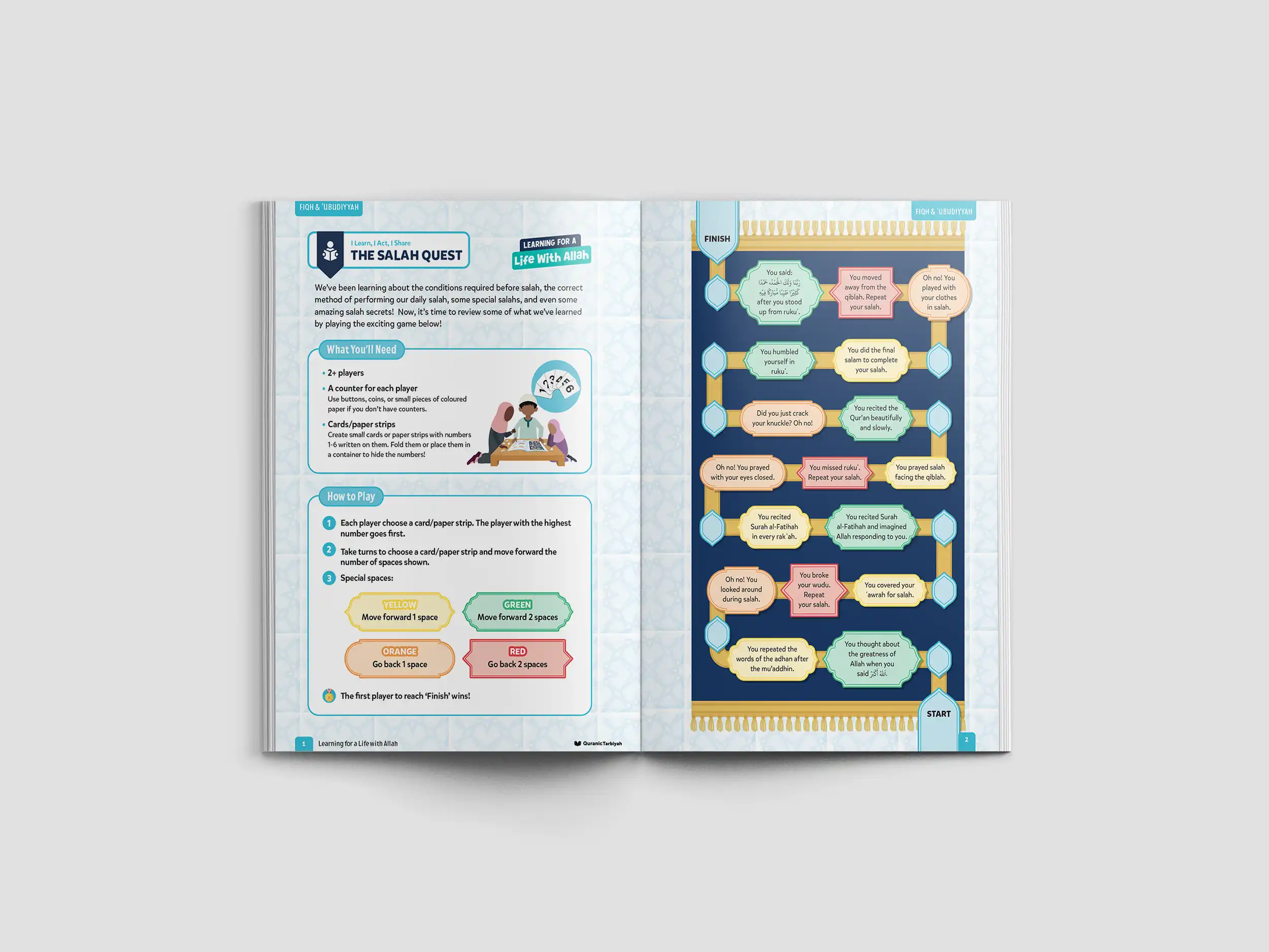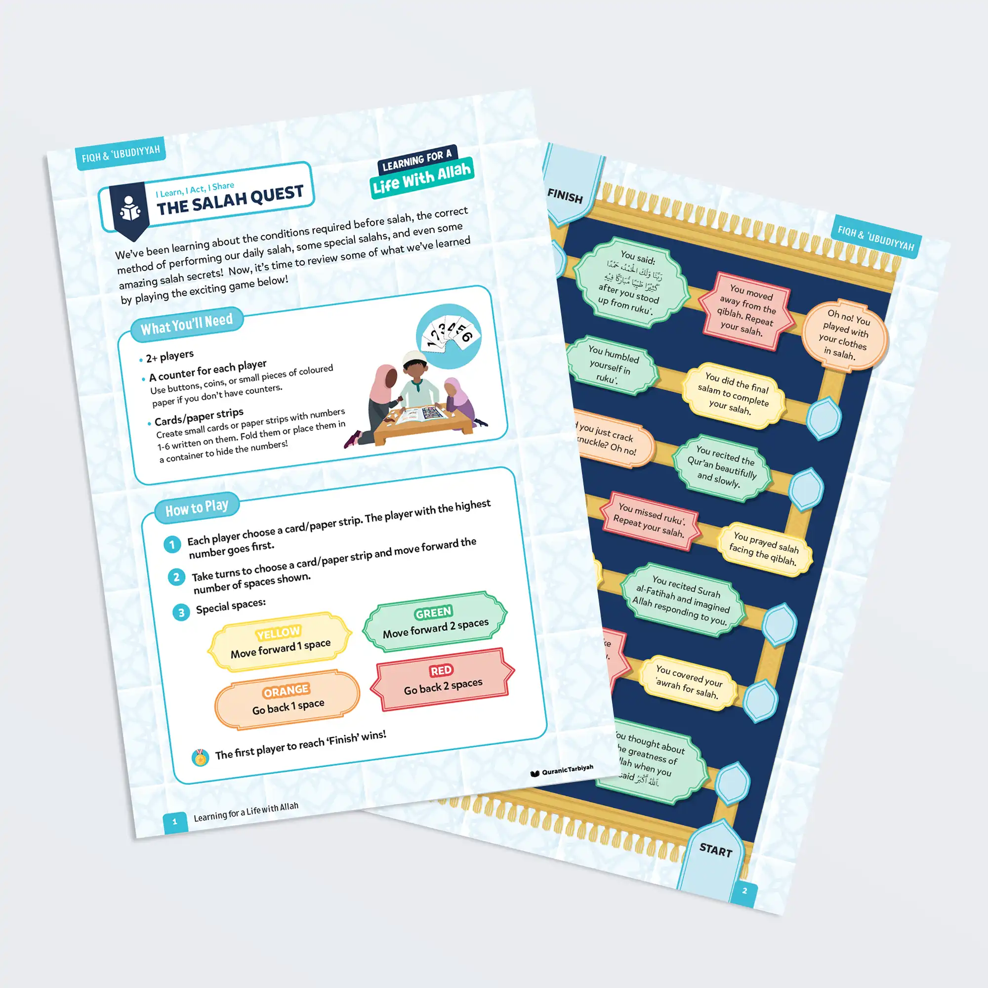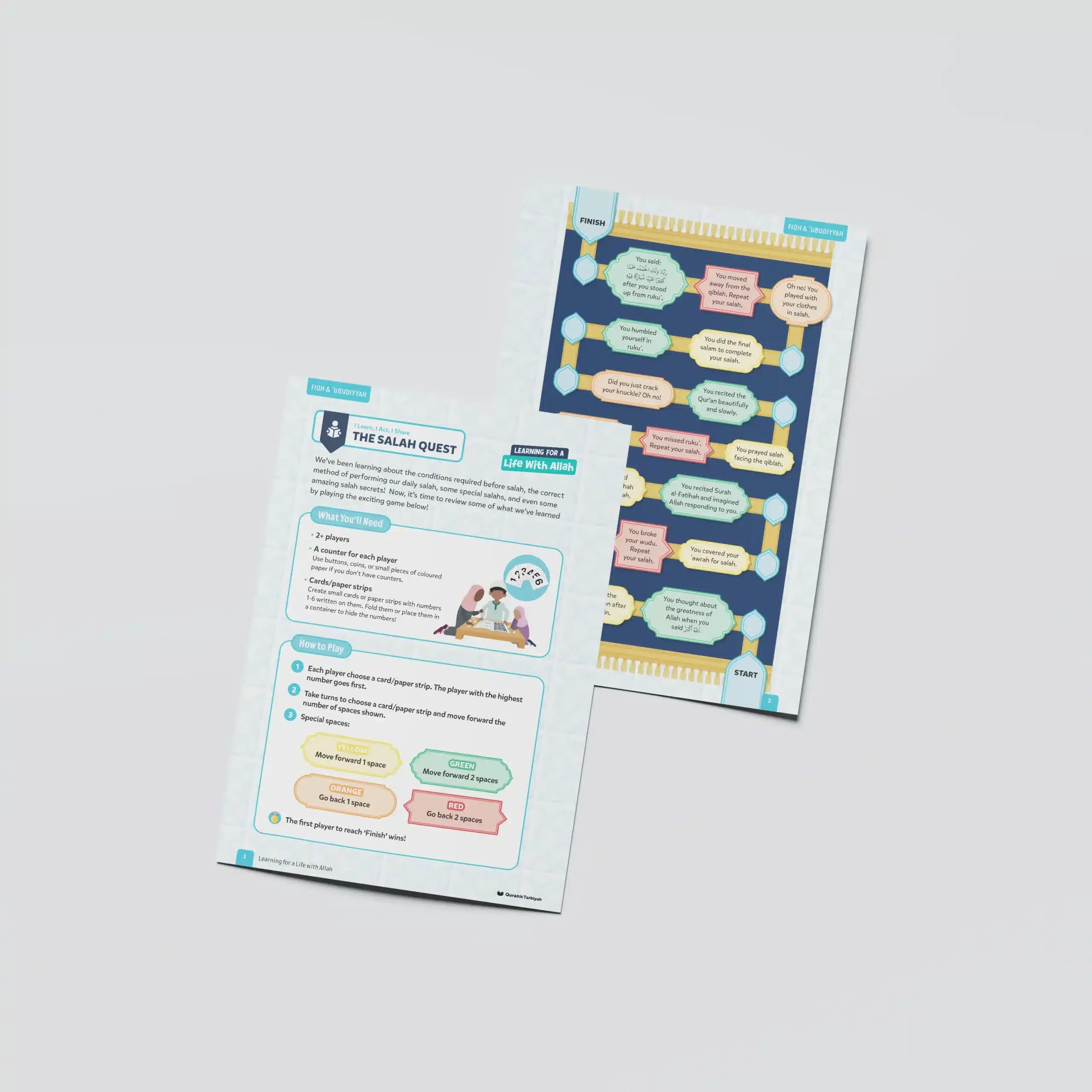 After learning about the conditions required before salah, the correct method of performing daily prayers, special salahs, and amazing salah secrets, young Muslims are invited to put their understanding into action through an exciting review game that makes learning the essentials of prayer both memorable and enjoyable.