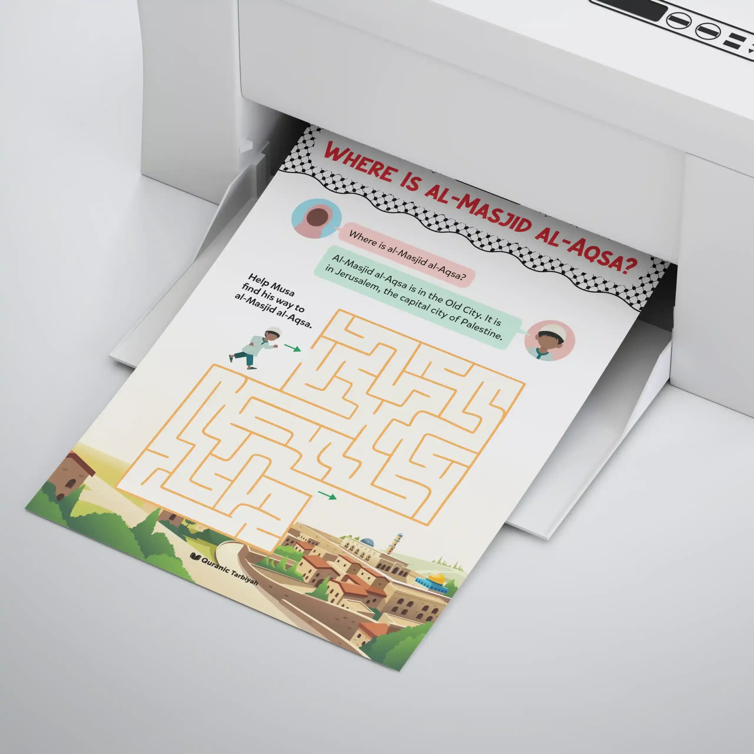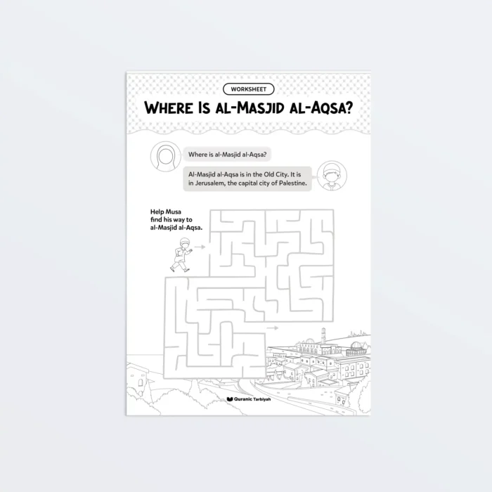 Help young learners discover al-Masjid al-Aqsa’s blessed location through this engaging maze worksheet. They help Musa navigate to al-Masjid al-Aqsa whilst learning it’s in the Old City of Jerusalem, the capital city of Palestine.