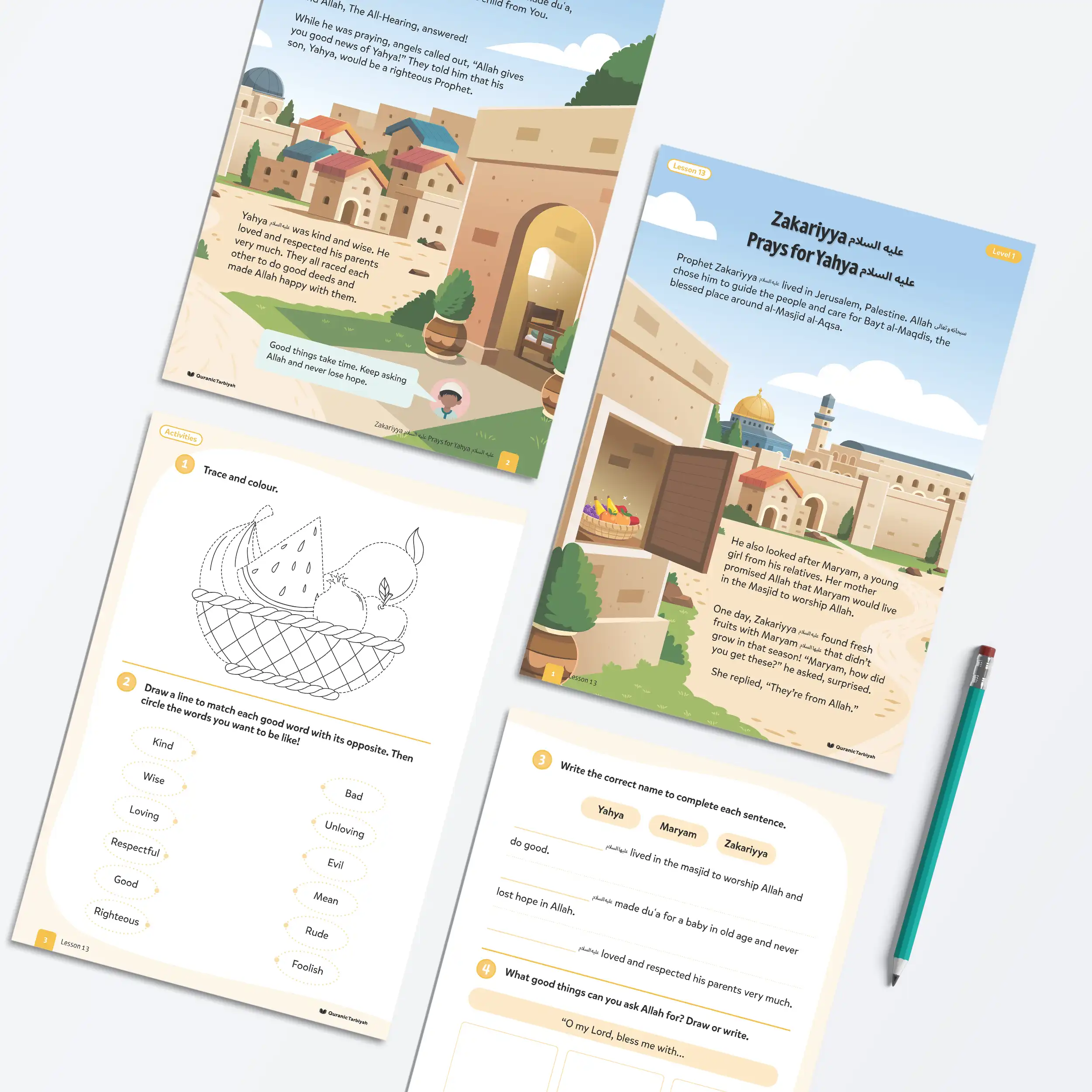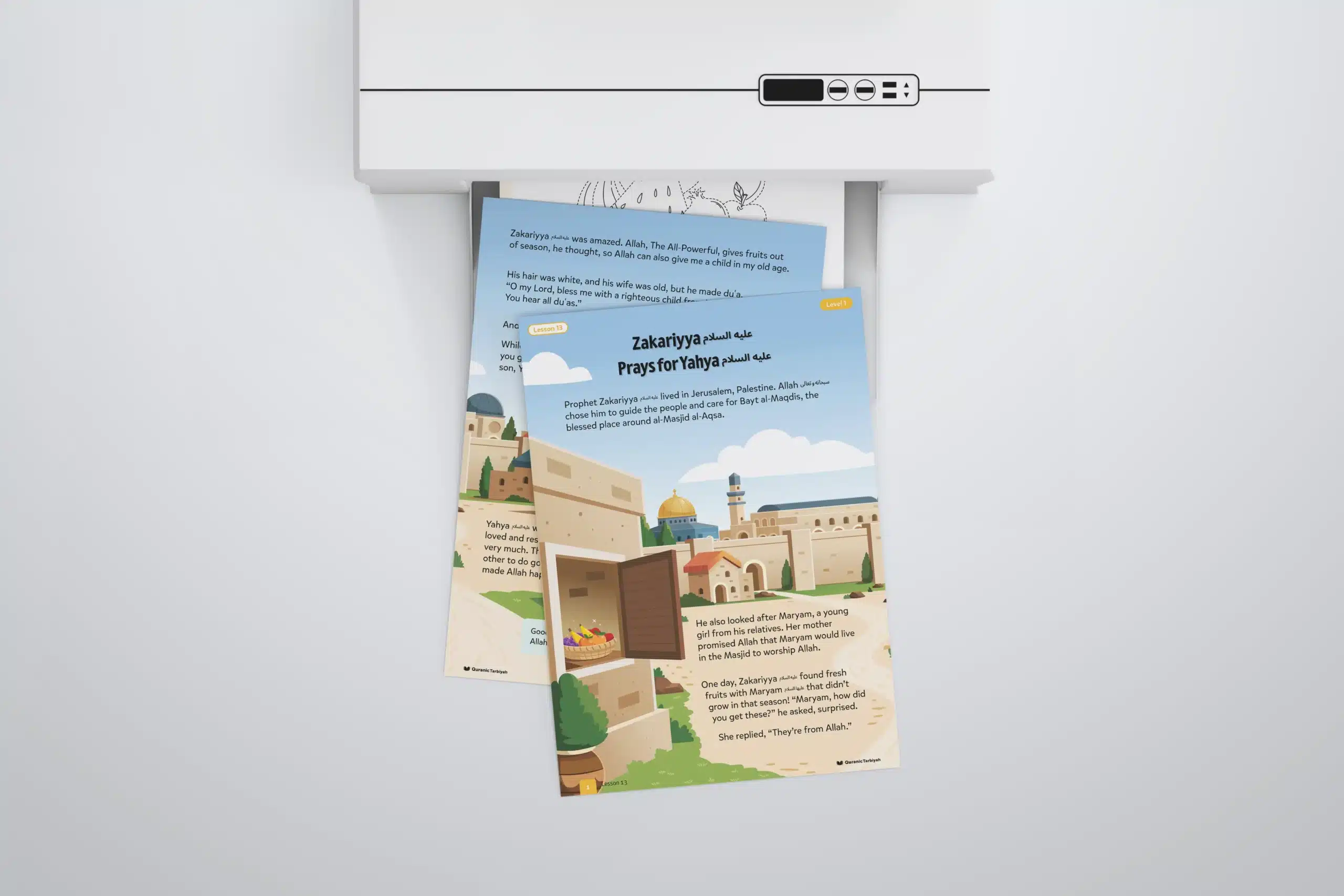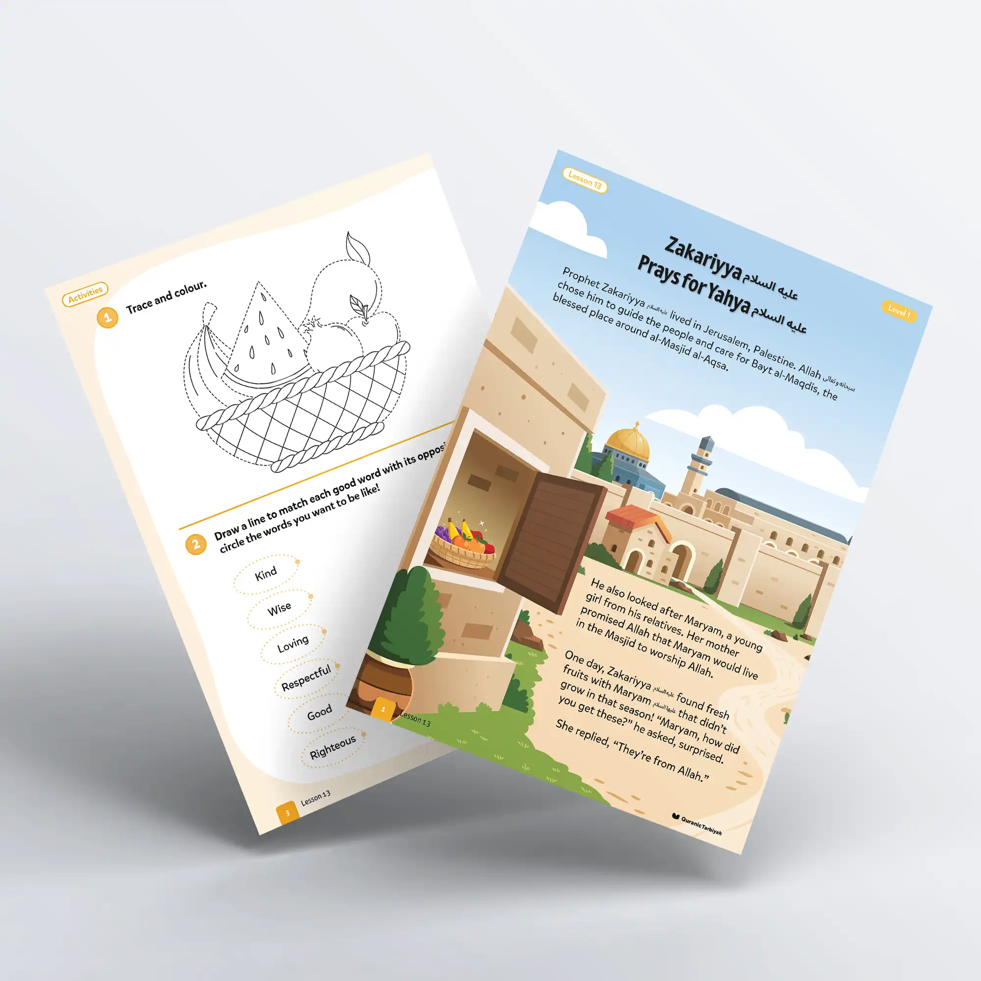 This Sirah lesson tells the story of Prophet Zakariyya عليه السلام and his duʿa for a child he never stopped hoping for. Part of the Sirah Stories series, it is set in Jerusalem, Palestine, where Allah chose Zakariyya عليه السلام to guide the people and care for Bayt al-Maqdis, the blessed place around al-Masjid al-Aqsa.